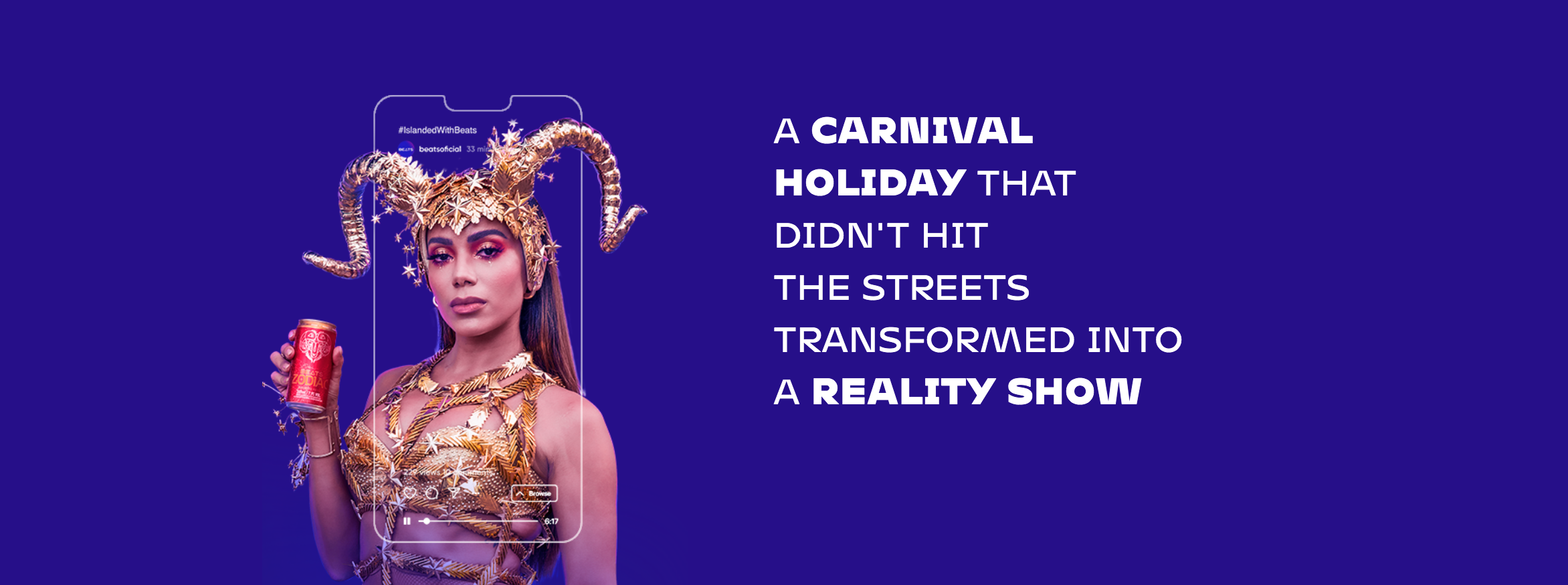 In 2021, the biggest popular party in Brazil was unable to leave home. So, Beats took all this fun to Instagram. We transformed the carnival of the Brazilian popstar Anitta and her 11 friends into an online reality show on an isolated island where the public could enjoy and interact real-time on Instagram.